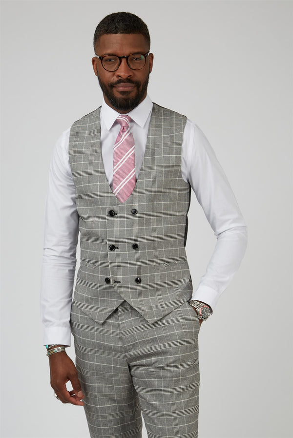 MARC DARCY BROMLEY - STONE SINGLE BREASTED CHECK WAISTCOAT