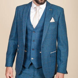 Marc Darcy Dion Blue Tweed Check Waistcoat